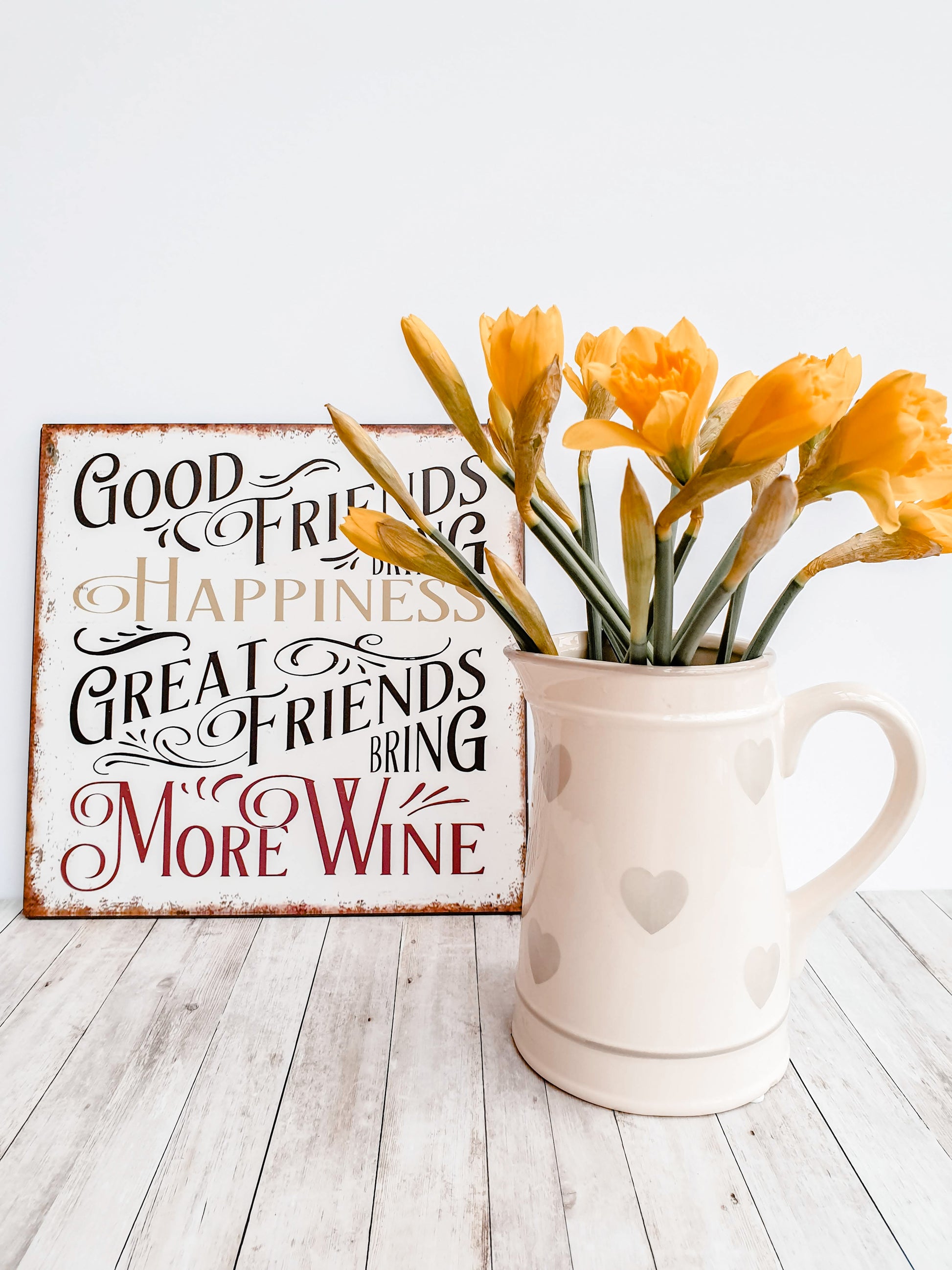 Whether you're hosting a dinner party or just enjoying a glass of wine with your best friend, this sign is a great way to celebrate the joy of friendship.
